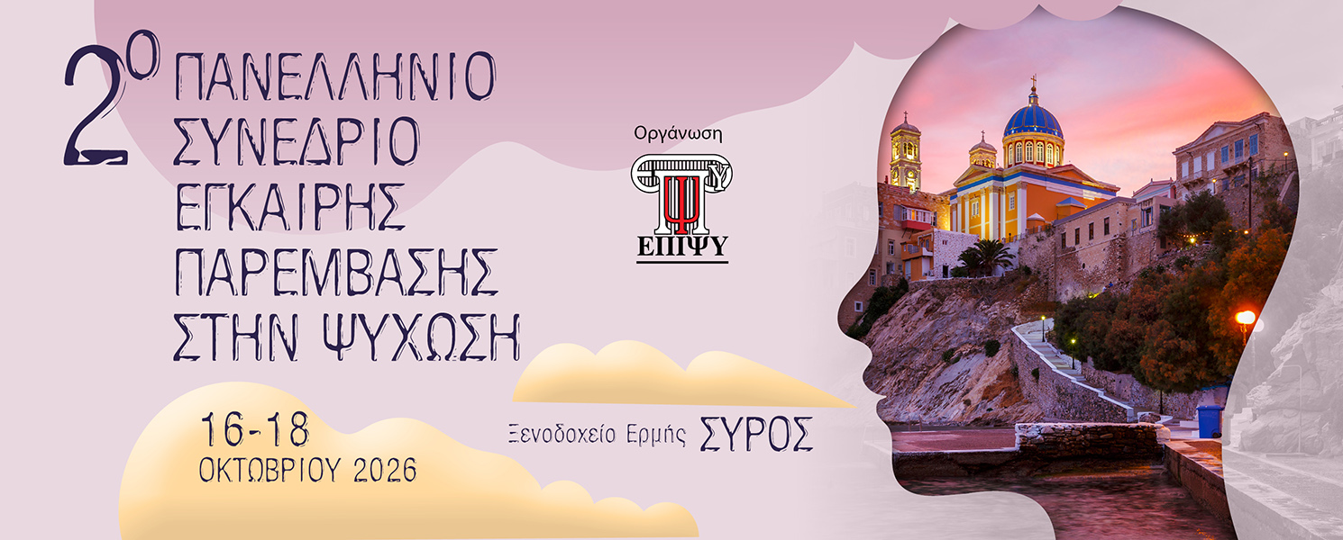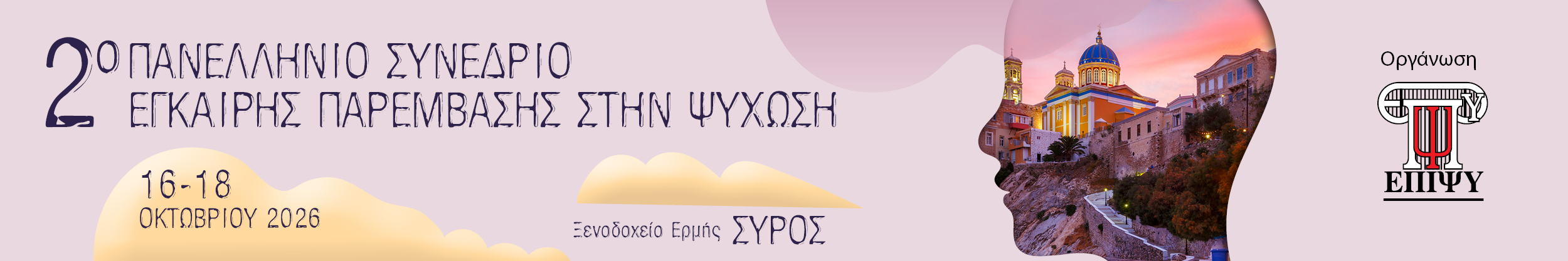 Με ιδιαίτερη χαρά σας ανακοινώνουμε τη διοργάνωση του «2ου Πανελληνίου Συνεδρίου Έγκαιρης Παρέμβασης στην Ψύχωση», που θα πραγματοποιηθεί στη Σύρο, από τις 16 έως τις 18 Οκτωβρίου 2026.